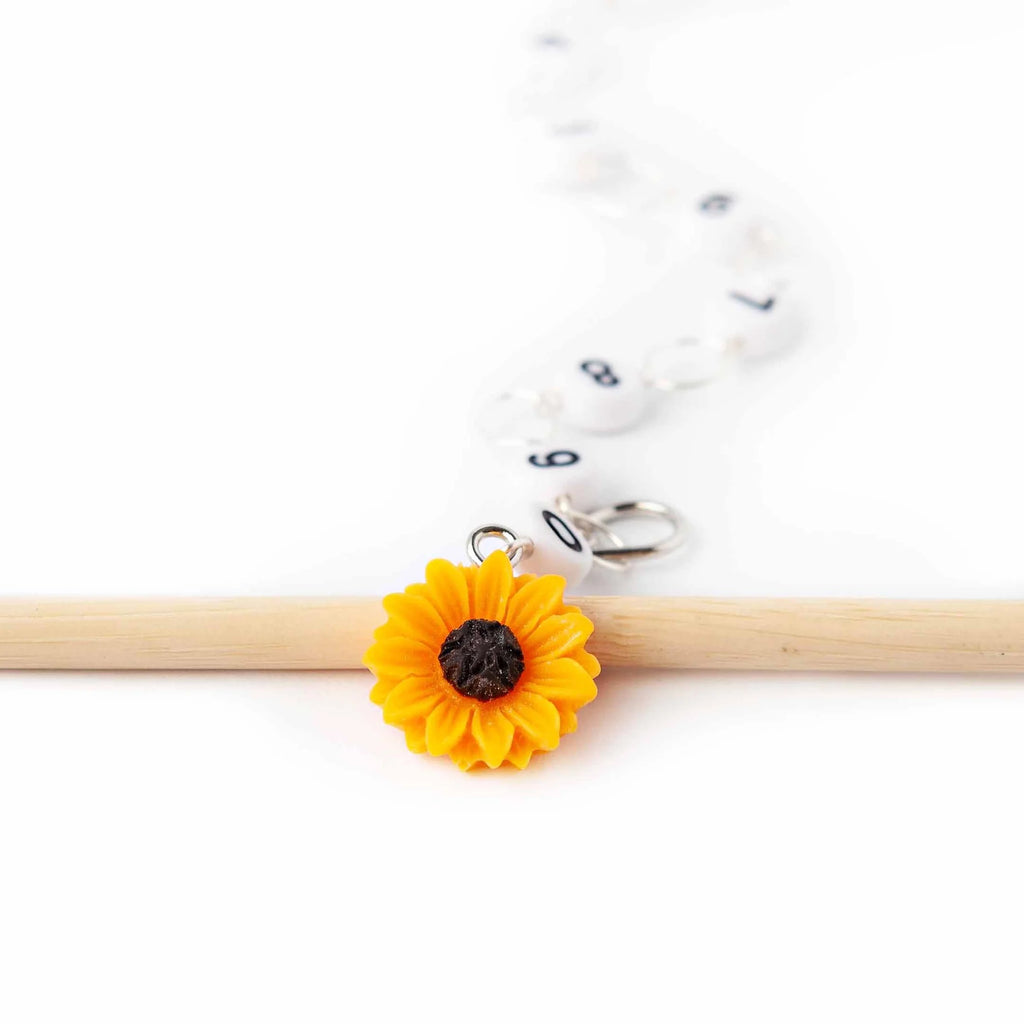 To use: Place row counter on needles as any other stitch marker. Each time you come to the counter move it to the next number in the chain. Use the clip to mark the “10’s” place when counting more than 10 rows, or use it to keep track of pattern repeats.